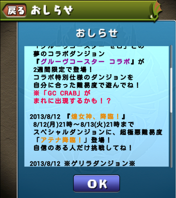 パズドラのお知らせにアテナ降臨があったはずなのに消える現象が発生。