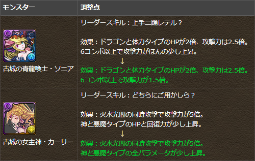 一部モンスターのリーダースキルを調整!