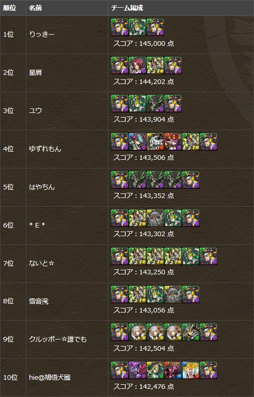 パズドラ ヘラ・イース杯 上位結果